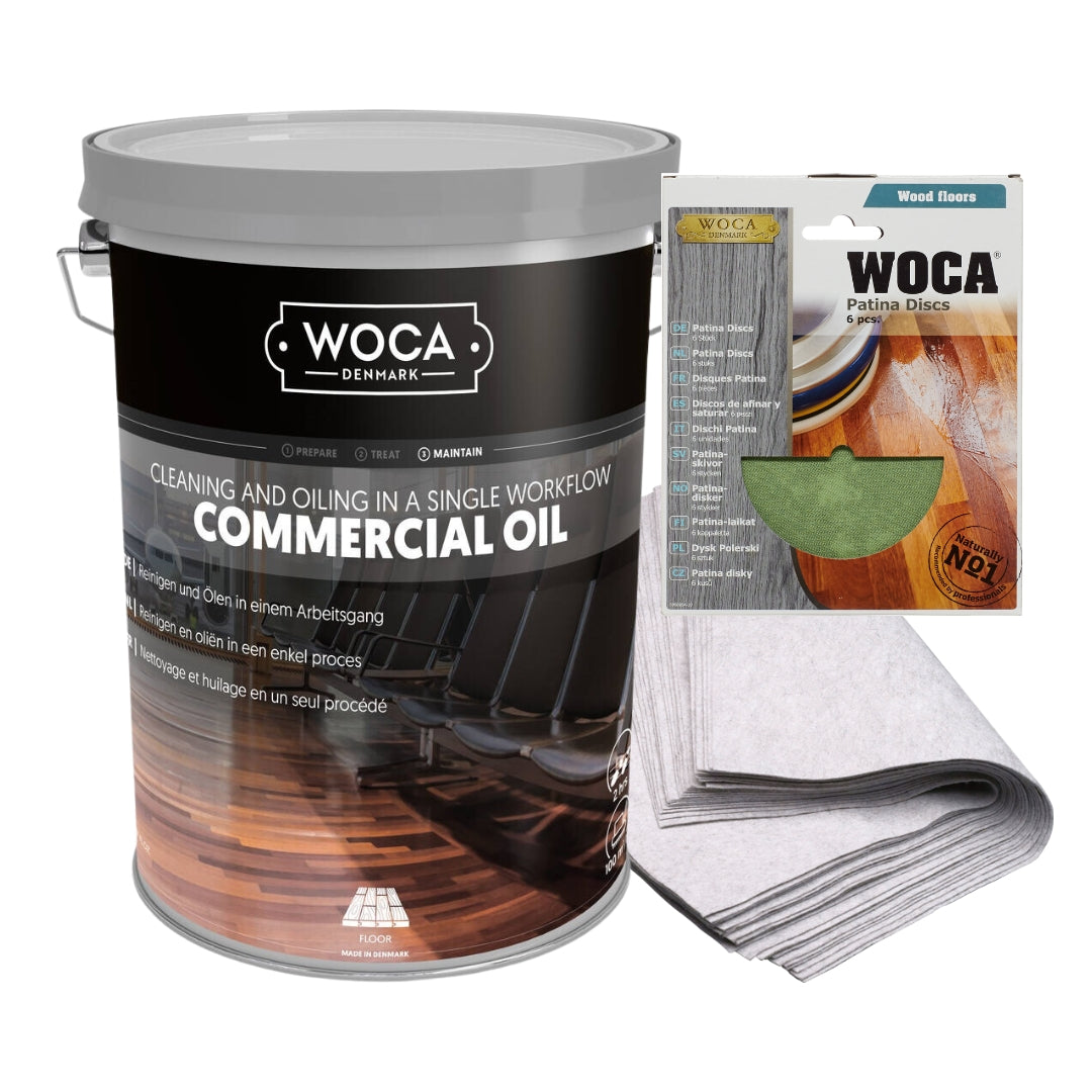 Commercial Oil simultaneously cleans and re-oils surfaces without the need for water. You can work in sections without the need for renovation closures.